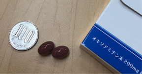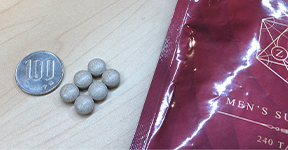 一日の飲用の目安は6粒。飲む回数やタイミングも制限されていないため朝晩3粒ずつにわけたり、一度に6粒でも可。写真の通り1粒も小さいので飲みやすそう。