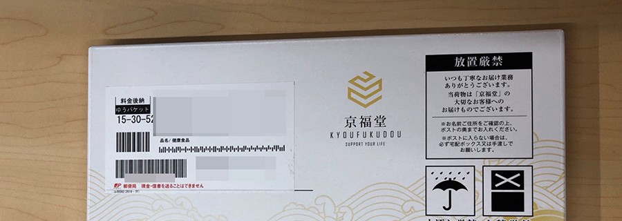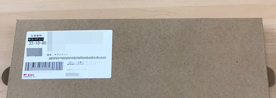 中身がわからないように無地の段ボール箱で品名は『サプリメント』として送られてくるので家族にバレる心配も少ない。ポスト投函にはならず、直接の受取であったためやや不便に感じるかもしれない。