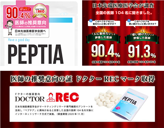 医師推奨の証でもある【ドクターRECマーク】を取得しているメンズサプリは極めて珍しく、成分、満足度、実感力は業界トップクラスと言って間違いないでしょう。数多くのお医者さんから高い評価を得ているペプチアですが、信頼できる材料は他にもあります。