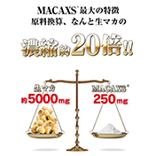 そのマカの濃縮20倍のエネルギーが期待できるのがMACAXS®だといわれています。