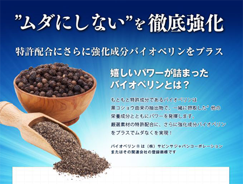 4つ目はバイオペリン。これは黒コショウから抽出された特許成分です。